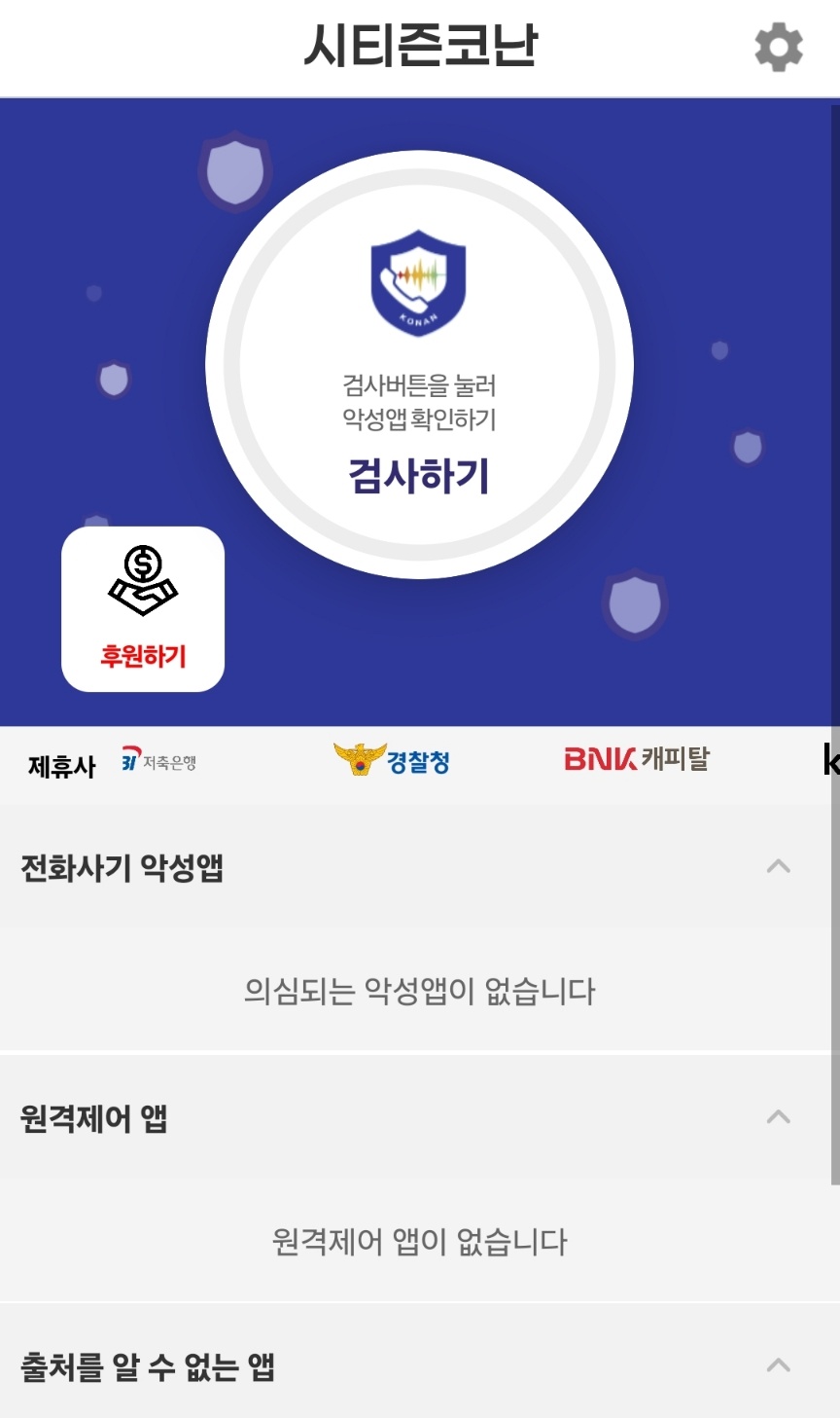 시티즌코난앱은 모바일 기기의 보안을 점검할 수 있는 기능도 제공합니다. 사용자는 앱 내에서 제공하는 악성 앱 검사 기능을 통해 자신의 기기가 안전한지 점검할 수 있습니다. 이 기능은 최신 보안 위협을 실시간으로 반영하며, 악성 코드나 스파이웨어가 기기에 설치되어 있는지 여부를 체크해 줍니다.