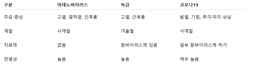 아데노바이러스 vs 독감, 코로나 19